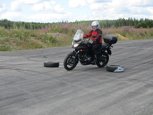 ja moottoripyörän käsittelyä harjoittelemassa. Saanon Veijo